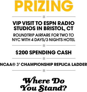 *Entry in the Werner Ladder Bracket Challenge via the Mike & Mike group WILL NOT provide entry in the ESPN Bracket Challenge promotion on ESPN.com.